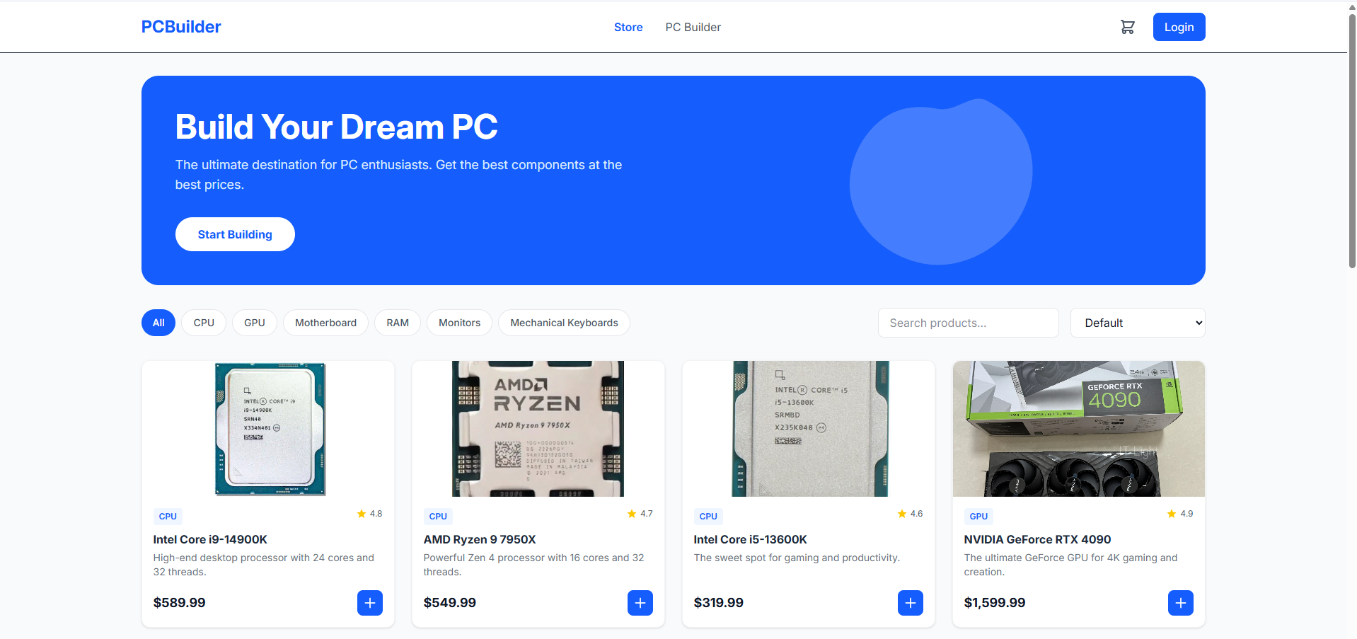 This is an e-commerce web application where users can browse PC components, add items to their shopping cart, and utilize a dedicated "PC Builder" module. Redux will handle the complex global state management, ensuring smooth data flow across the application without deep prop-drilling, especially when managing the shopping cart and builder configurations.